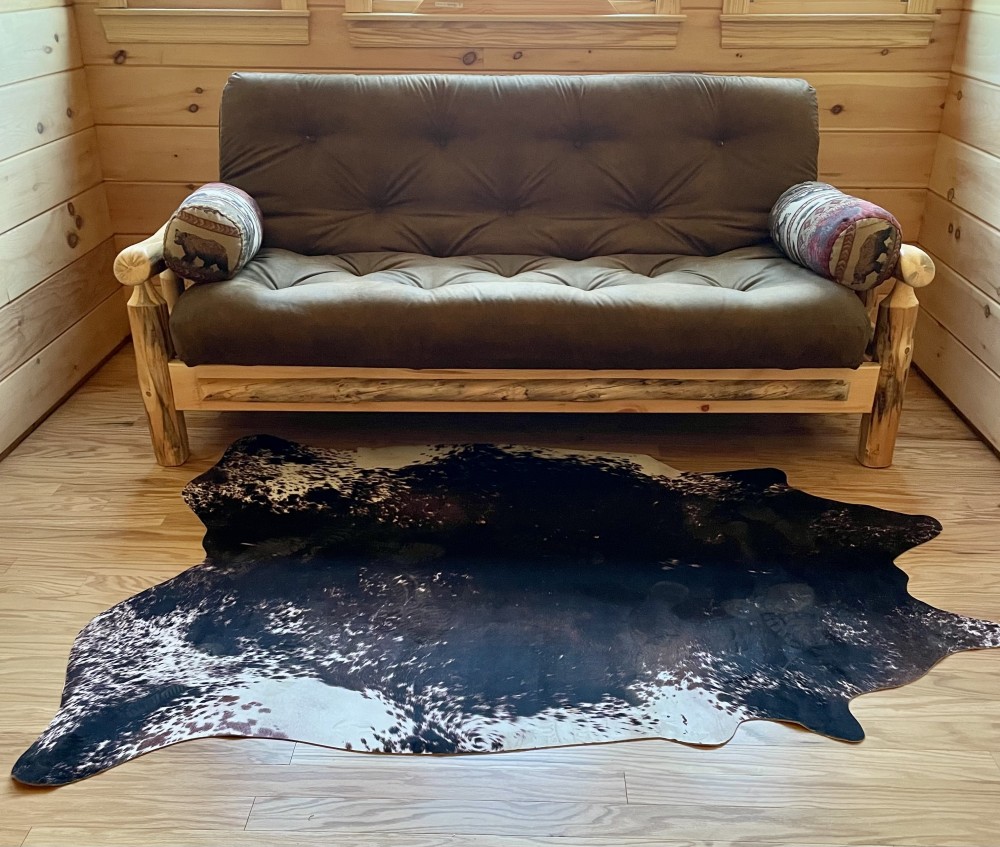 Our futons are made from red pine logs. Futons come with a futon mattress and two thrown pillows as shown. Custom fabric is available. These futons are a great option to increase your sleeping capacity!