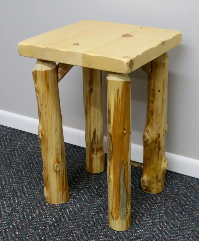 16″ x 16″ Pine top with northern cedar log legs. Perfect for small spaces.
