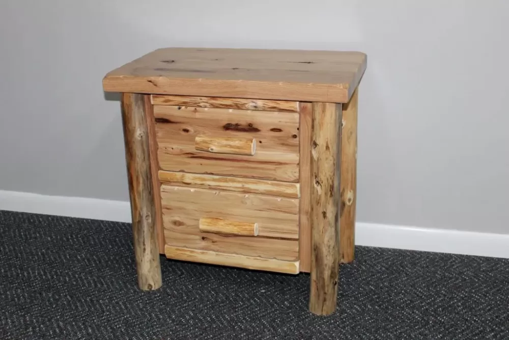 16″ x 24″ hickory top with northern white cedar log legs. Two fully extending drawers.