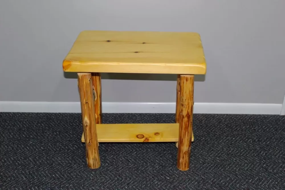 Perfect for a bedroom night stand or a living room end table, this piece features a 16″ x 24″ pine top with northern white cedar log legs. It can be made with or without a bottom shelf.